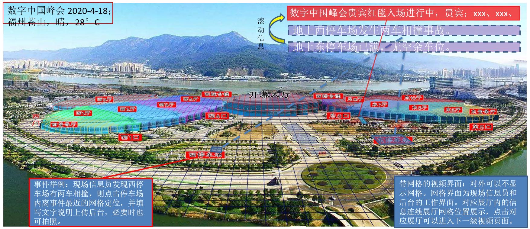 通過給福州倉(cāng)山海峽會(huì)展中心安裝多個(gè)高位攝像頭,利用北斗網(wǎng)格編碼和三維網(wǎng)格立體建模技術(shù),實(shí)現(xiàn)視頻內(nèi)容空間感知、快速定位、高效管理、多源數(shù)據(jù)協(xié)同分析能力的視頻網(wǎng)格化管理系統(tǒng),滿足跨鏡頭跟蹤、人群趨勢(shì)分析等應(yīng)用需求,從而快速、高效地實(shí)現(xiàn)會(huì)展中心視頻監(jiān)控智能管理、重點(diǎn)區(qū)域安全態(tài)勢(shì)感知及實(shí)時(shí)指揮,提升會(huì)展中心安防管控能力和應(yīng)急事件響應(yīng)能力。